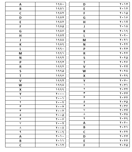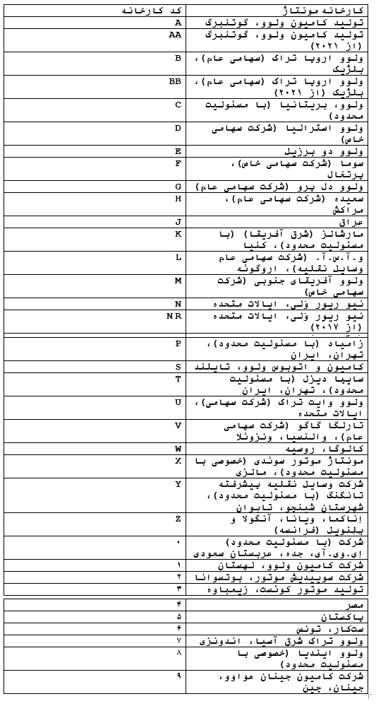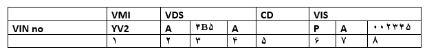 توضیحی در مورد حروف و اعداد به کار رفته در VIN در ادامه ارائه شده است.