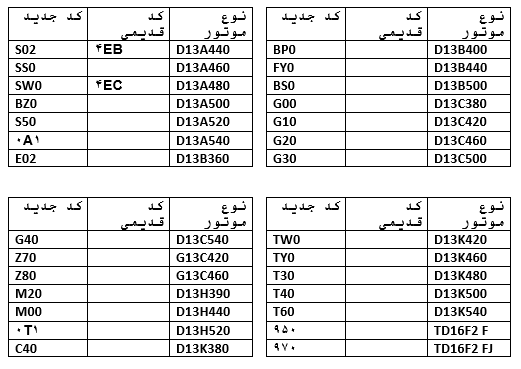 - مدل موتور: در صورت انتخاب، EEV پس از مدل موتور درج میشود؛ مثال: (D13C460 EEV)