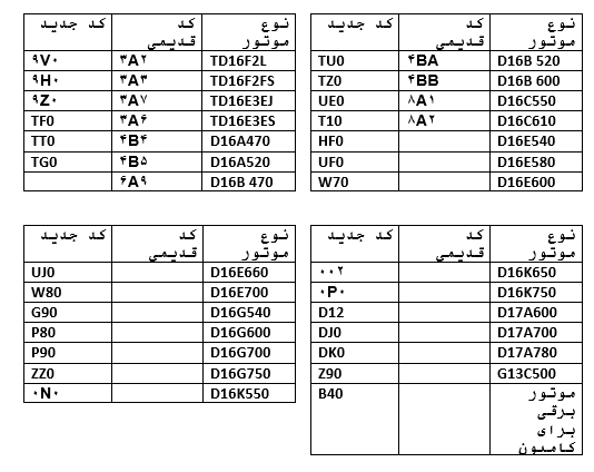 تعیین موتور روی یک پلاک درج شده یا مستقیماً روی بلوک سیلندرحک میشود ونوع موتور وشماره سریال را مشخص میکند.