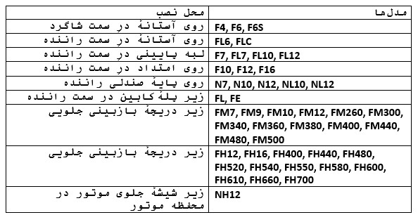 محل نصب پلاکها درخودروهای FM و FH نسخه 2