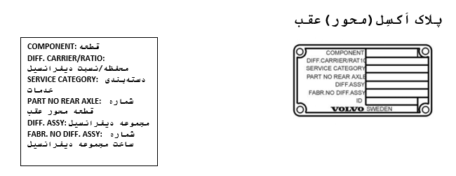 پلاک محور عقب، نوع محور عقب، شماره قطعه، شماره ساخت (شمارهسریال)، نسبت دنده و دسته بندی خدمات را مشخص میکند.